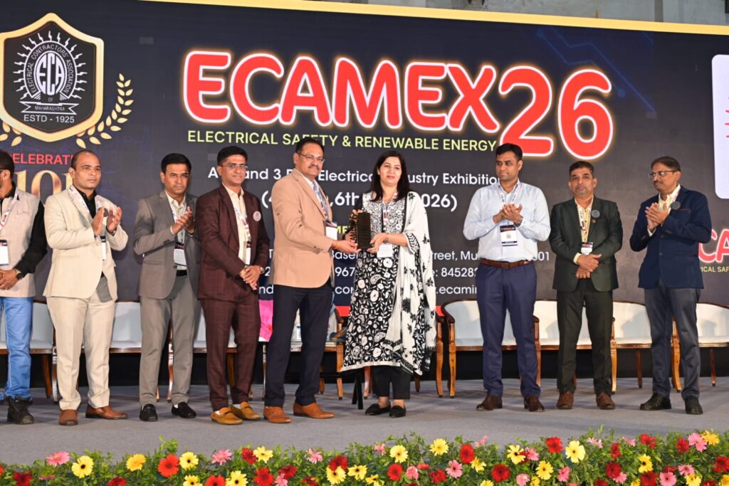 Dr. Indu Rani Jakhar, an officer of the Indian Administrative Service (IAS) currently District Collector of Palghar since April 2025, was felicitated by Shri Devang Thakur, President , ECAM at ECAMEX 2026, India’s mega electrical and energy exhibition, marking 101 years of the Electrical Contractors’ Association of Maharashtra (ECAM).