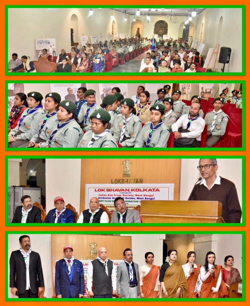 Rotarian Lal Goel expressed his deep gratitude to His Excellency Governor Dr C. V. Ananda Bose for granting him the honour of addressing this historic gathering at Lok Bhavan. He also extended heartfelt thanks to Rotarian Sree Nandy and her troupe for their inspiring performance, and to Dr S. K. Pattanayak, Dr Avinash Gupta, Mr Sandeep, Mr Suresh Vaidhyan, the Indian Red Cross Society, Hindustan Scouts & Guides, and all dignitaries, scouts, and guides who participated in large numbers and contributed to the program’s success.