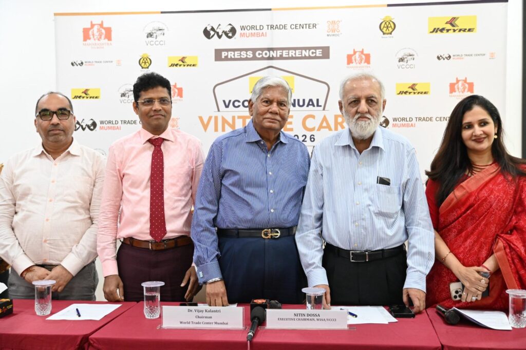 Mumbai, 22nd January 2025 – “This year in succession World Trade Center will host the 5th Edition of the Annual Vintage, Classic and Modern Classic Car Fiesta 2026 with the inauguration ceremony scheduled on 24 January 2026 and 25th January 2026 reserved for public viewing, followed by the ceremonial flag-off on Republic Day, 26 January 2026. The Fiesta aims to reinforce the message of “Sadak Suraksha, Jeevan Raksha. The event is being organised by WTC in association with VCCCI and WIAA”, said Dr. Vijay Kalantri, Chairman, World Trade Centre, Mumbai and President All India Association of Industries at a press conference organized to brief media about the upcoming event at the World Trade Centre, Mumbai.